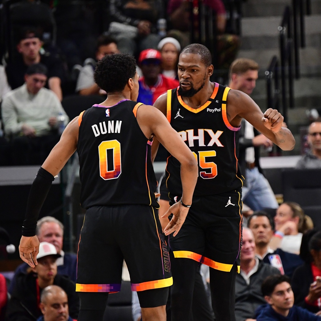 邓恩本季至今场均三分球命中率为31.7%,各队也普遍愿意放空这位菜鸟,虽然太阳首发3号位守强攻弱,进攻算是额外赠送,但毕竟在拥有杜兰特和布克的球队,其实够用了。
