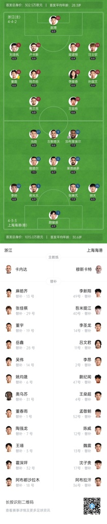 第40分钟,海港后场长传打穿浙江队防守,禁区内冯劲跟进爆射击中横梁↓