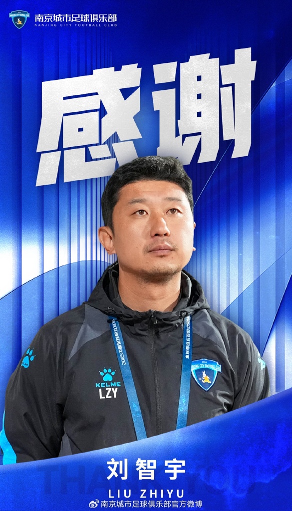 带队13场仅胜3场!官方:刘智宇不再担任南京城市一线队主教练