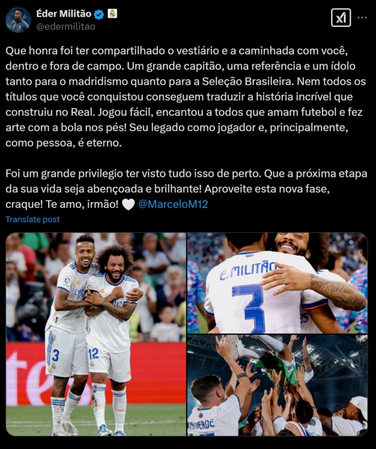 2月6日讯 36岁的马塞洛宣布挂靴退役,他的前皇马和巴西队友米利唐更新社媒,向马塞洛送上了祝福。米利唐晒出两人的合影,并写道:“无论是...